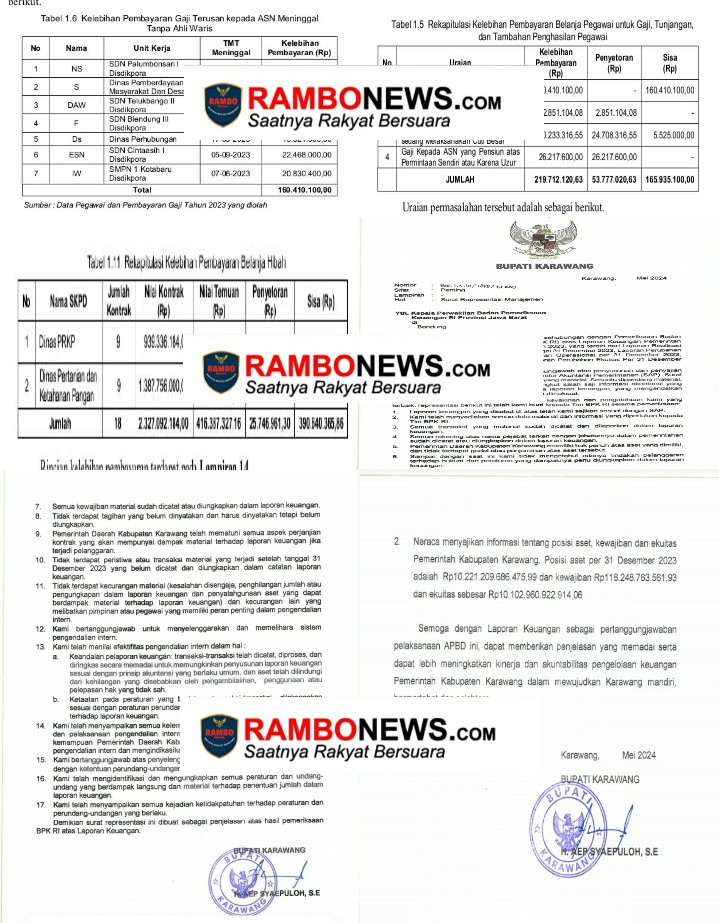 Ali Sopyan Pimpinan Umum Media Rajawali News, sangat menyayangi dari temuan BPK RI di Tahun 2023 di wilayah Kabupaten Karawang tak tersorot dari Aparat Penegak Hukum setempat yang begitu banyaknya meninggalkan sehingga sisa kelebihan pembayaran adalah sebesar Rp390.640.365,86 dengan rekapitulasi yang luar biasa ucap Ali Sopyan ke awak media.