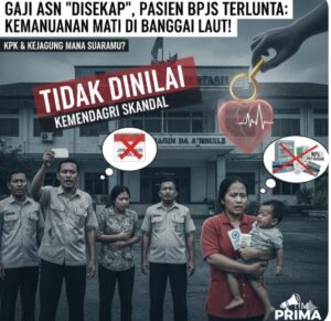 ”Ini bukan sekedar masalah teknis, ini adalah kejahatan kemanusiaan yang dibungkus administrasi. Uang ada Rp30 Miliar menganggur, tapi gaji ASN tidak dibayar dan obat di RSUD kosong. Apakah uang itu sengaja ‘diamankan’ untuk kepentingan bunga bank atau lobi-lobi politik?” tegas perwakilan Tim Prima.