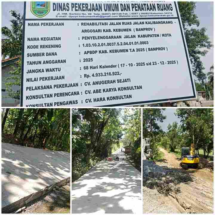 Proyek rehabilitasi ruas jalan vital yang menghubungkan Kalibangkang-Argosari, Kecamatan Ayah, Kabupaten Kebumen, kini menjadi sorotan setelah ditemukan kondisi rabat beton yang dinilai masyarakat rapuh dan tidak kuat.18 November 2025