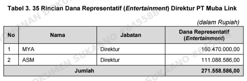 Namun, Direktur PT Muba Link selain menerima Gaji Pokok juga menerima Dana Representatif (Entertainment).