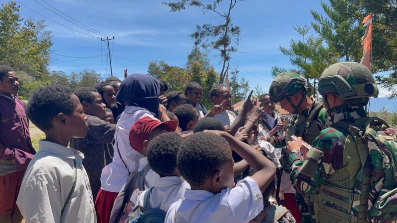 Dalam rangka meningkatkan minat baca serta mendukung pendidikan anak-anak di wilayah penugasan, Satgas Yonif 521/DY melaksanakan kegiatan pembinaan teritorial (Binter) dengan membagikan buku kepada anak-anak di Distrik Napua, Kabupaten Jayawijaya, Papua Pegunungan. (16/4/2026).