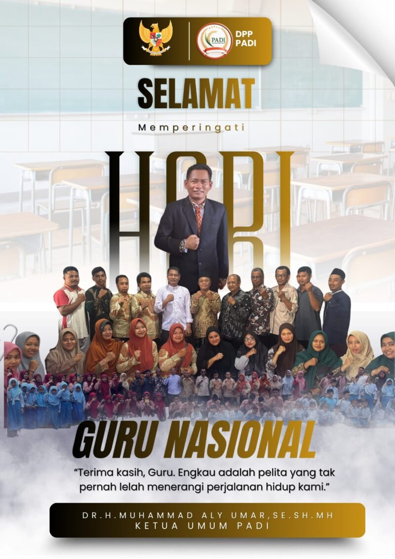 Selamat Hari Guru Nasional 2025.Tetaplah menjadi inspirasi yang menerangi negeri ini.Karena ketika guru hebat, maka Indonesia pasti kuat.ucap Dr.H.Muhammad Aly Umar ,SE,SH,MH Ketua Umum PADi