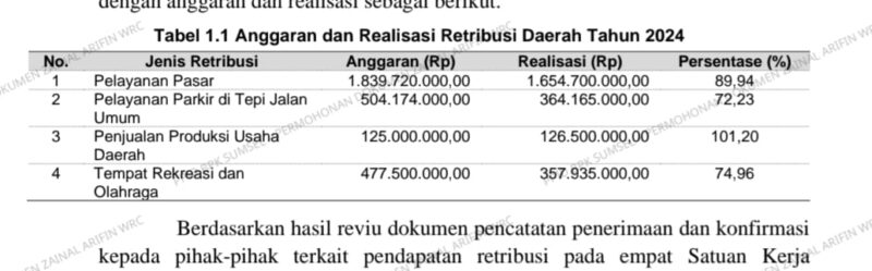 Pengelolaan Pendapatan Retribusi pada Empat SKPD Belum Memadai Pemkab Muara Enim pada Tahun 2024 menganggarkan Pendapatan Retribusi Daerah sebesar Rp120.847.143.074,00 dengan realisasi sebesar  Rp113.062.672.451,39 atau 93,55% dari anggaran.