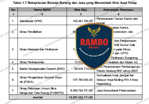 Ali Sopyan Relawan Rakyat Bela Prabowo ( RAMBO) mengutip adanya kejanggalan dalam penggunaan Keuangan APBD Yang di duga keras di buat Bancakan oleh gerombolan pejabat bangsat pasalnya Kegiatan yang menambah nilai Aset Tetap Pada tujuh SKPD sebesar Rp10.257.451.711,00 dianggarkan pada Belanja Barang dan Jasa.