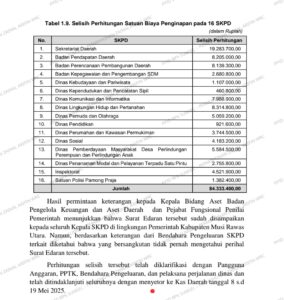 Perhitungan Satuan Biaya Penginapan Perjalanan Dinas Belum Sesuai Surat Edaran Bupati Dalam merealisasikan belanja perjalanan dinas, Pemerintah Kabupaten Musi Rawas Utara berpedoman pada Peraturan Bupati Musi Rawas Utara Nomor 108 Tahun 2023 tentang Standar Biaya Masukan TA 2024 sebagaimana telah diubah terakhir dengan Peraturan Bupati Musi Rawas Utara Nomor 56 Tahun 2024.