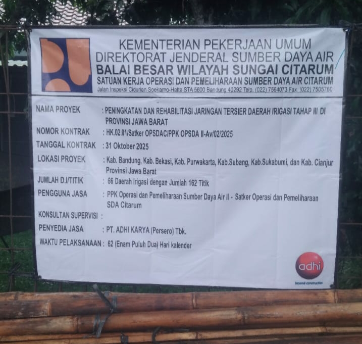 Beberapa hari ini telah berlangsung pembangunan saluran air tersier yang beralamat di kp pintu desa bantarjaya, yang di kerjakan oleh salah satu PT yang bernaung kepada negara atau kerap di sebut BUMN yaitu PT Adhikarya Persero Tbk.