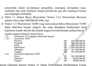 a) Nomor 1.5 tentang Honorarium Tim Pelaksana Kegiatan dan Sekretariat Tim Pelaksana Kegiatan, menyatakan bahwa “Tim yang keanggotaannya berasal dari lintas satuan kerja perangkat daerah pengaturan batasan jumlah tim yang dapat diberikan honorarium bagi pejabat eselon I, pejabat eselon II, pejabat eselon III, pejabat eselon IV, pelaksana dan pejabat fungsional pada tim dimaksud, jumlah keanggotaan tim yang dapat diberikan honor sesuai dengan ketentuan sebagai berikut: