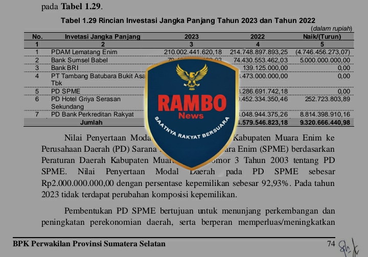 Ali Sopyan Relawan Rakyat Membela Prabowo ( RAMBO) menindak lanjuti dari hasil temuan BPK RI Muara Enim Tahun 2023 yang tidak sesuai pembayaran tunjangan perumahan DPRD dan tunjangan transportasi sebesar Rp.4.576.640.002.00 yang diduga belum tersentuh Proses Hukum