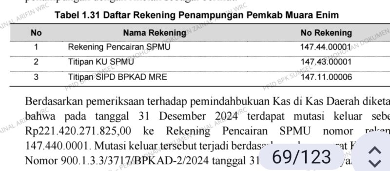 Pencairan Dana (SP2D), Pemkab Muara Enim menggunakan beberapa rekening