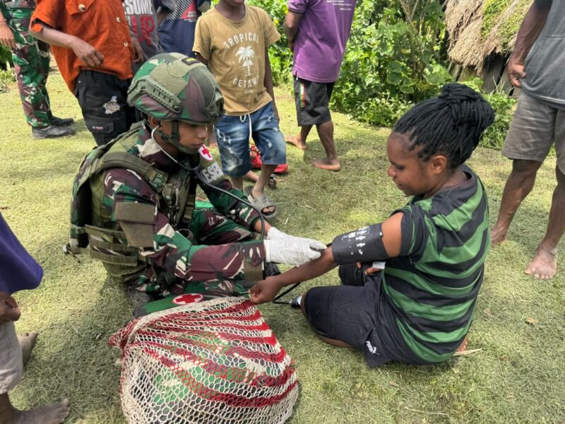 Dalam kesempatan tersebut, personel kesehatan Satgas memberikan pemeriksaan umum, pengobatan, serta edukasi mengenai pentingnya menjaga kesehatan kepada masyarakat.
