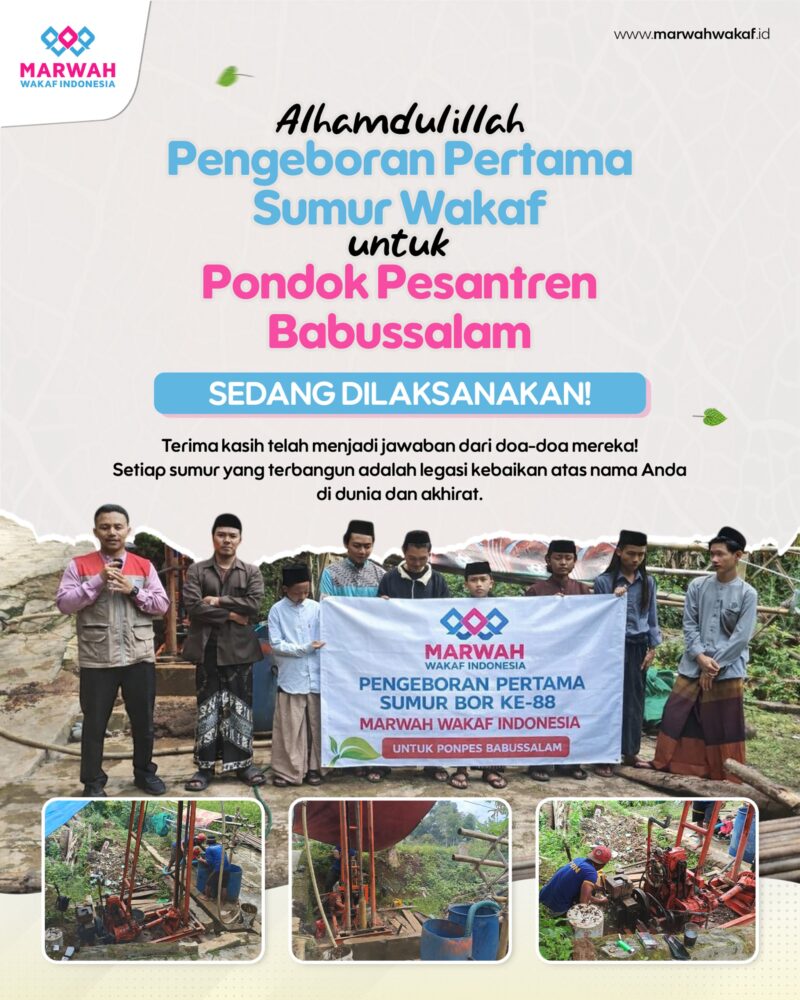 Alhamdulillah, berkat dukungan para donatur, saat ini Pengeboran Pertama Sumur Wakaf untuk Pondok Pesantren Babussalam sedang dilaksanakan!