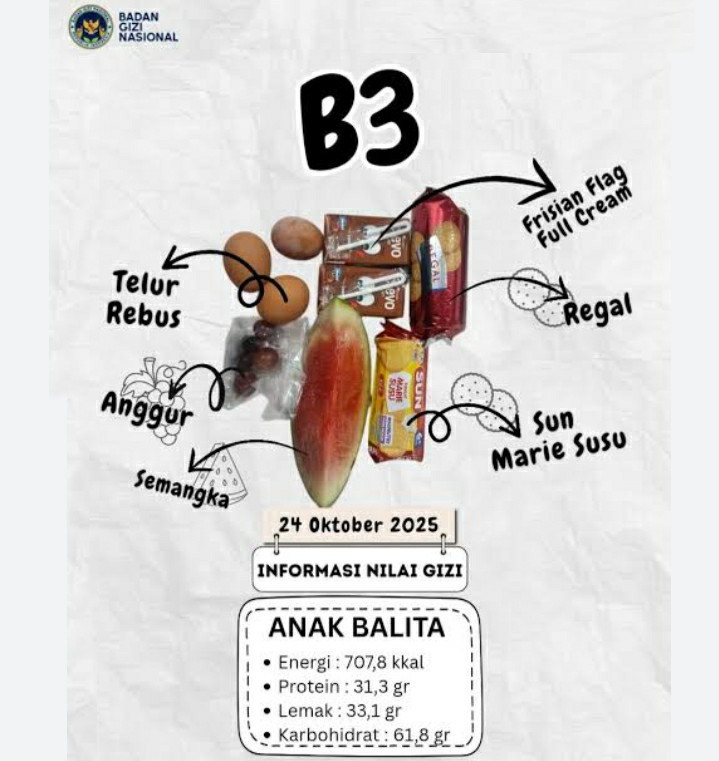 Sebagai informasi, program MBG B3 bertujuan untuk meningkatkan asupan gizi, mencegah stunting dan malnutrisi pada kelompok rentan, serta mendukung pencapaian visi Indonesia Emas 2045.