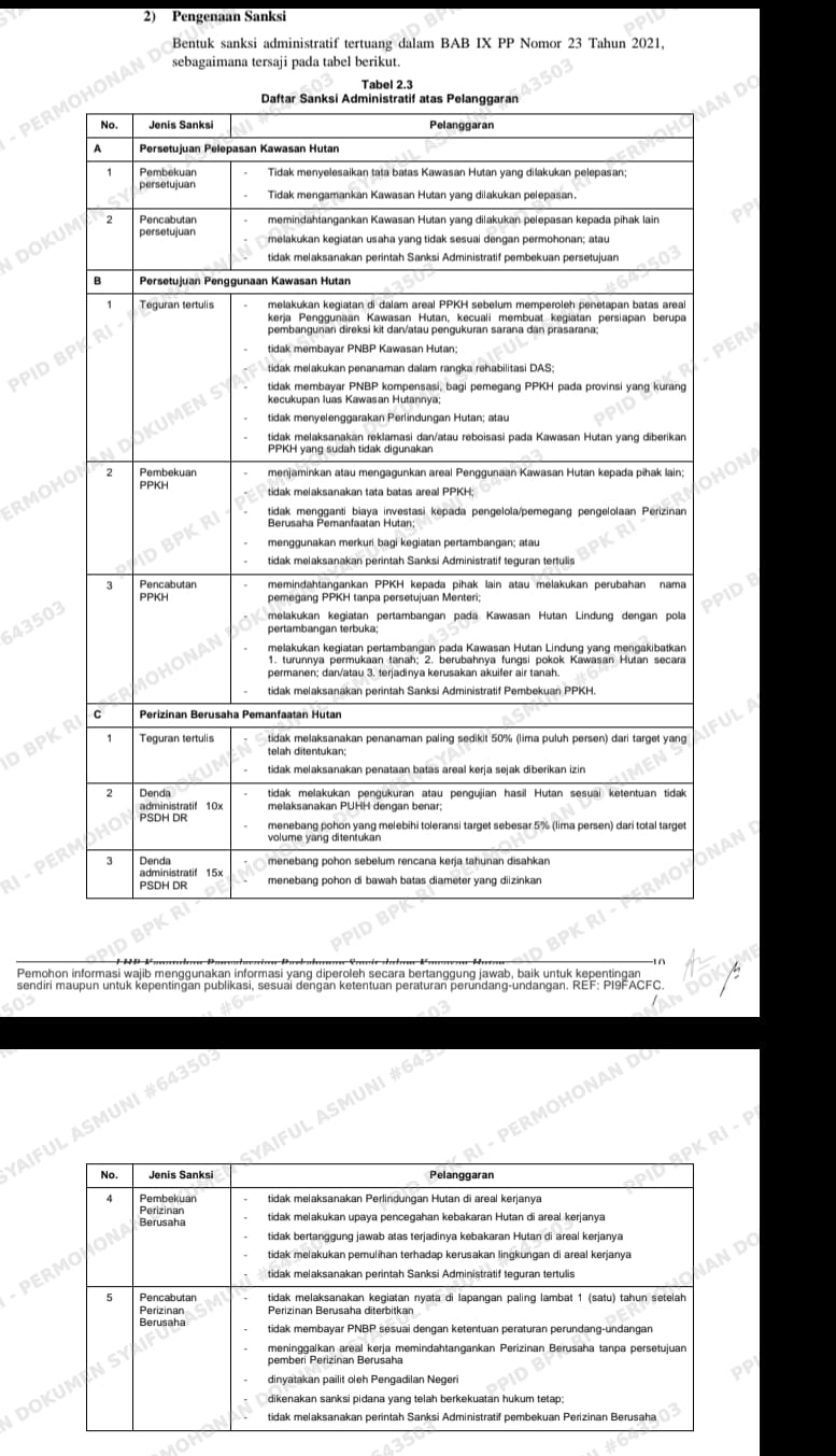 Bentuk sanksi administratif tertuang dalam BAB IX PP Nomor 23 Tahun 2021,sebagaimana tersaji pada tabel berikut 2.3