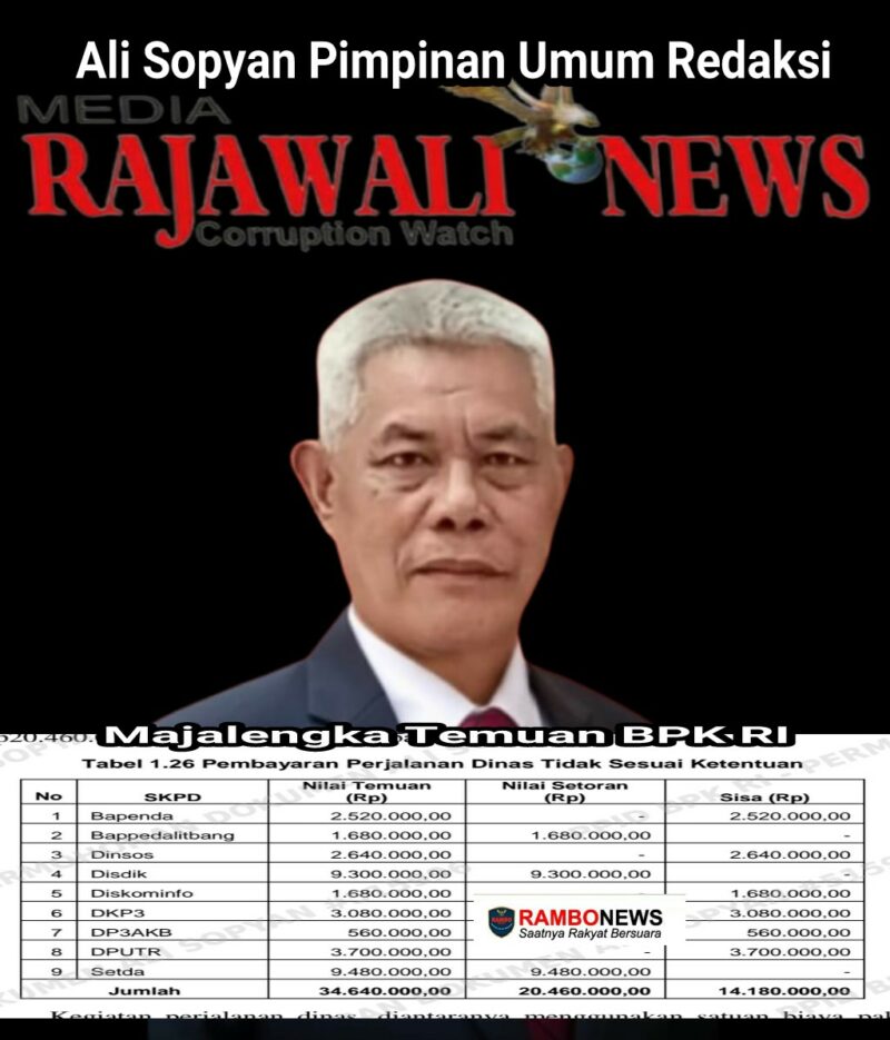 Ali Sopyan Pimpinan Umum Media Rajawalinews Group, menyikapi hasil temuan BPK RI di Sembilan SKPD di Pemkab Majalengka