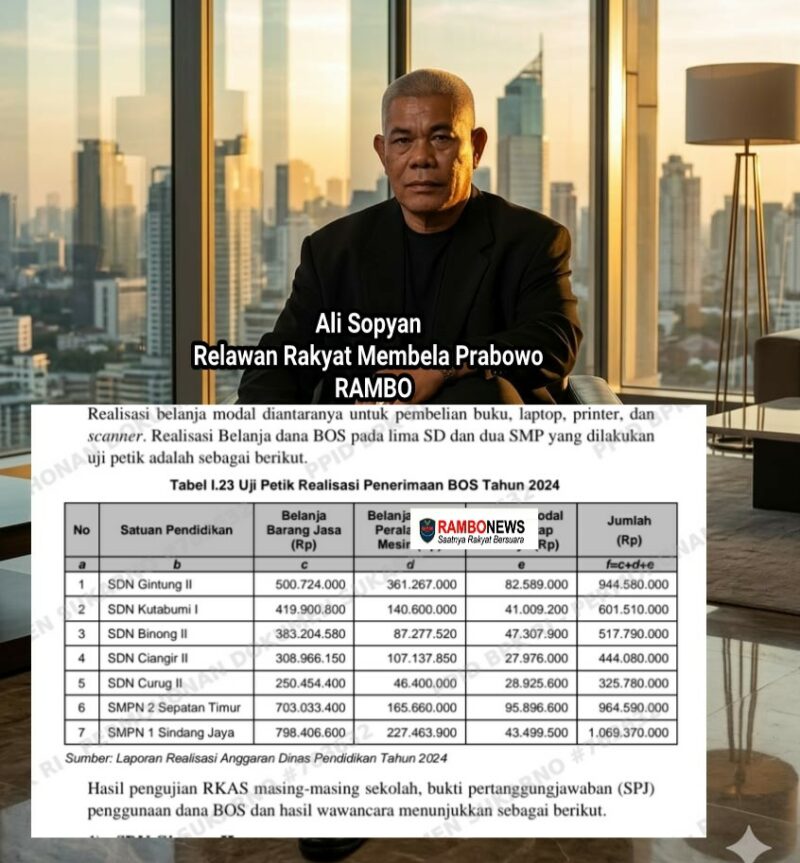 Ali Sopyan Relawan Rakyat Membela Prabowo (RAMBO) sangat geram para oknum pejabat koruptor yang saat ini sedang subur menikmati uang negara diduga mengeruk Uang Dana Bos ucap Ali