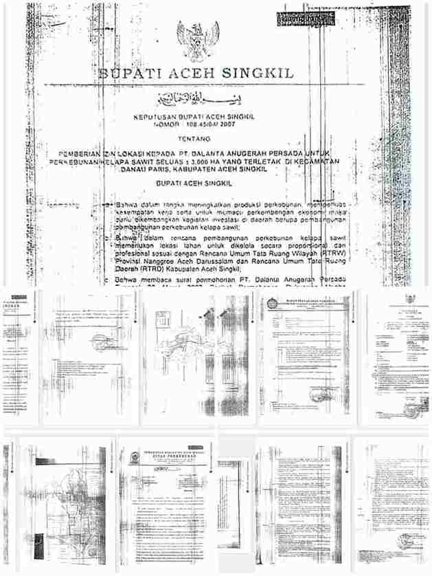 Berdasarkan dokumen Keputusan Bupati Aceh Singkil Nomor 100.45/64/2007, PT Dalanta Anugerah Persada (DAP) tercatat mengajukan permohonan izin pada 20 Maret 2007.