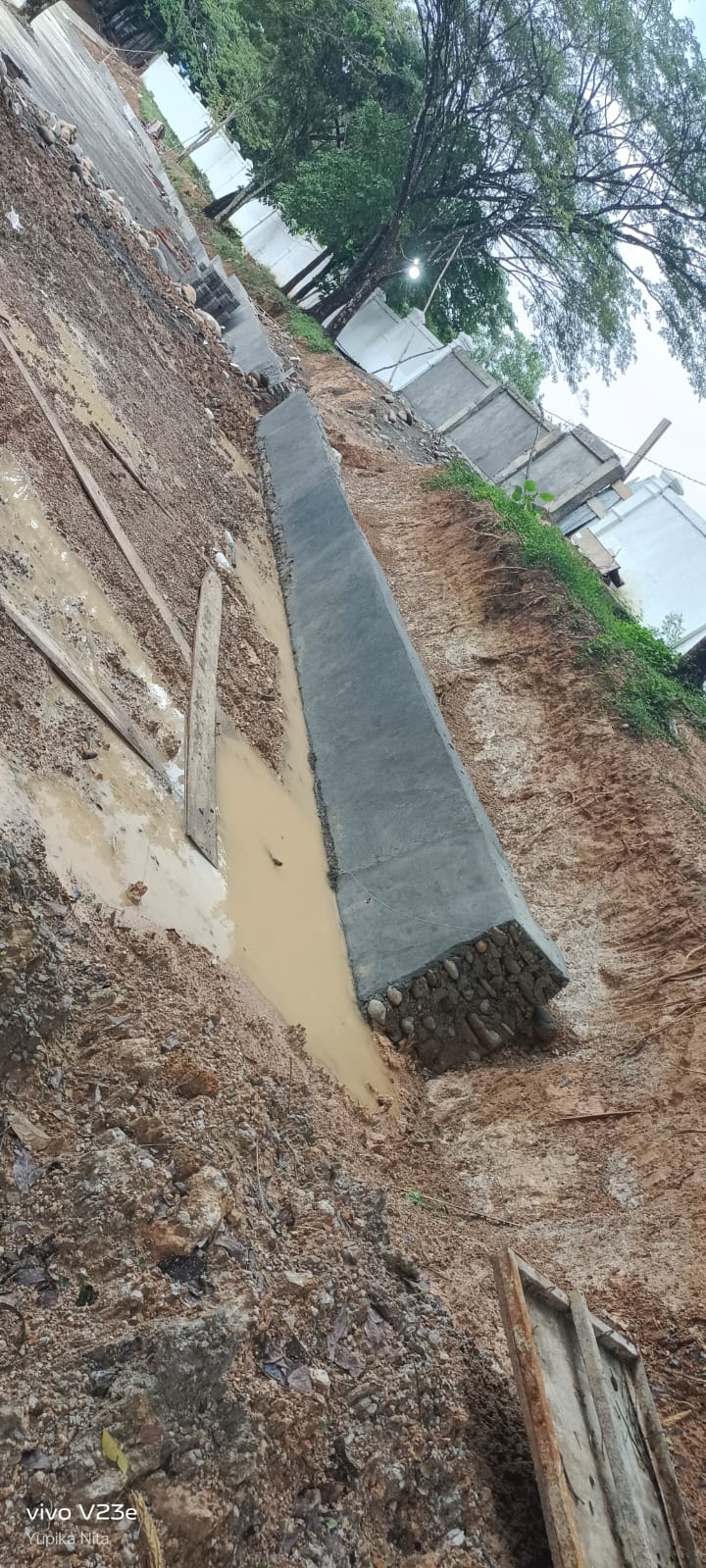 Pembangunannya asal jadi, untuk tembok penahan yang mereka bangun tidak ada pondasinya, sedangkan tembok tersebut sangat dibutuhkan karena melihat dari kondisi tanah yang mudah longsor jika tidak ada tembok penahan yang kokoh.